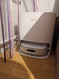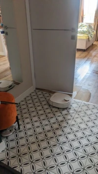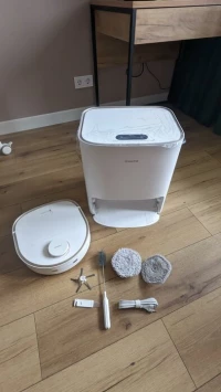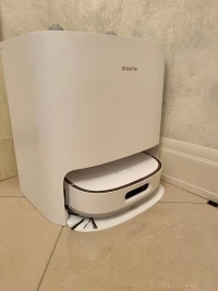 Пользуюсь пылесосом-мойкой 5 месяцев, он отлично справляется со своей задачей. Моет полы очень хорошо, правда если тряпки сильно изношены или швабры неправильно установлены, то могут оставаться сухие полосы. В этом случае я просто запускаю режим влажной уборки - все становится идеально чистым! Кота и собак он обходит стороной, а игрушки на карте помечает как препятствия. Провода и сушилку переезжает практически всегда. Камера работает отлично, но в темноте изображение не видно. За питомцами можно наблюдать удобно, динамик отличный, но нет микрофона, поэтому слышать собеседника через камеру невозможно. Контейнер для пыли - это просто находка! Пылесосит как зверь, а у нас две крупные собаки и кот. Ежедневно контейнер битком набит шерстью. Безмешковый вариант оказался идеальным решением, ведь мешки быстро забиваются и стоят немалых денег. Пылесос одновременно и пылесосит, и моет полы, но можно выбрать только один режим. База хорошо промывает тряпки, но ее тоже нужно чистить пару раз в неделю, так как насос не справляется со всеми загрязнениями. С мягким средством для пола результат получается намного лучше. Бывают небольшие сложности. Например, пылесос может застрять на небольшом перепаде высоты возле порогов, зато очень ловко обходит провода и сушилку. Иногда он может закрыть дверь, так как довольно массивный. В местах, где лидар не смог пройти, он лезет боком, пытаясь очистить поверхность, но иногда это заканчивается царапинками на мебели. В целом очень доволен!