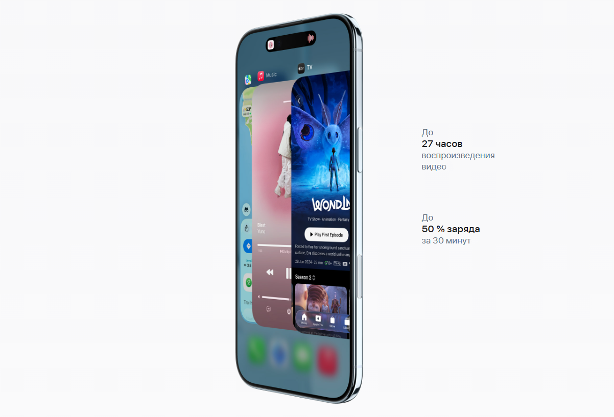 Устройство толщиной всего 5,6 мм оснащено 6,5-дюймовым OLED-дисплеем Super Retina XDR. Экран отличается увеличенным спектром яркости (до 3000 нит), плавностью скроллинга за счет технологии ProMotion и новым антибликовым покрытием. С обеих сторон корпус защищен керамическим щитом, который дополнен уникальной для этой серии титановой рамкой Grade 5.
