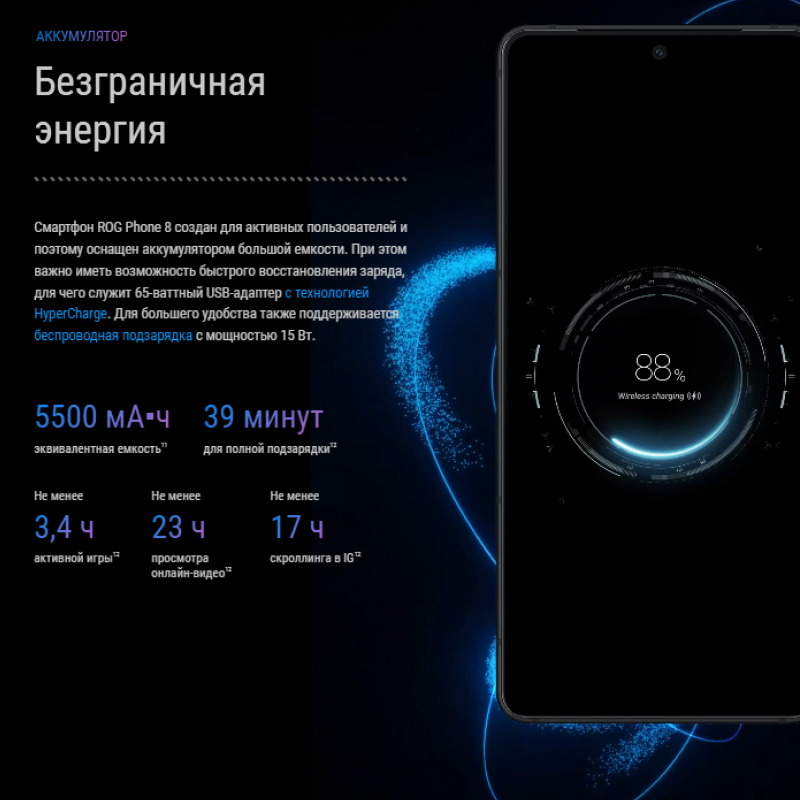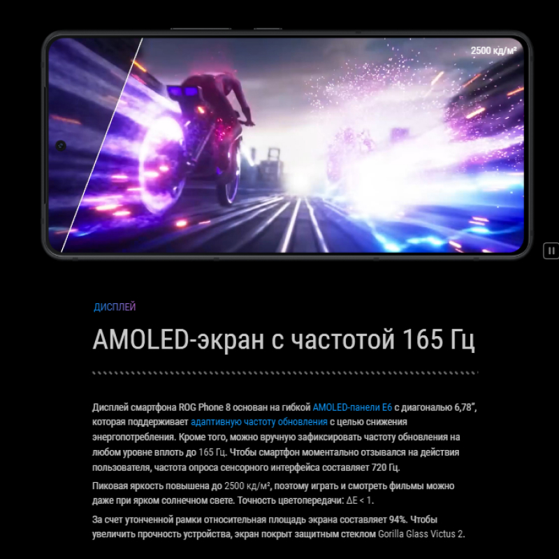 Экран Asus ROG Phone 8 обеспечивает потрясающий игровой опыт благодаря высокому разрешению и частоте обновления 144 Гц. Погрузитесь в игру с четкими и плавными изображениями.