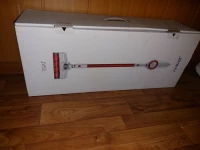 Пылесос выполнен в пластиковом корпусе, где привлекательно скомбинированы красный и белый оттенки. Он имеет тип 2-в-1, то есть может выступать в качестве длинного вертикального пылесоса со штангой и компактного устройства для чистки диванов и салонов автомобилей. Все насадки быстро присоединяются и отсоединяются, что лишь ускоряет уборку.